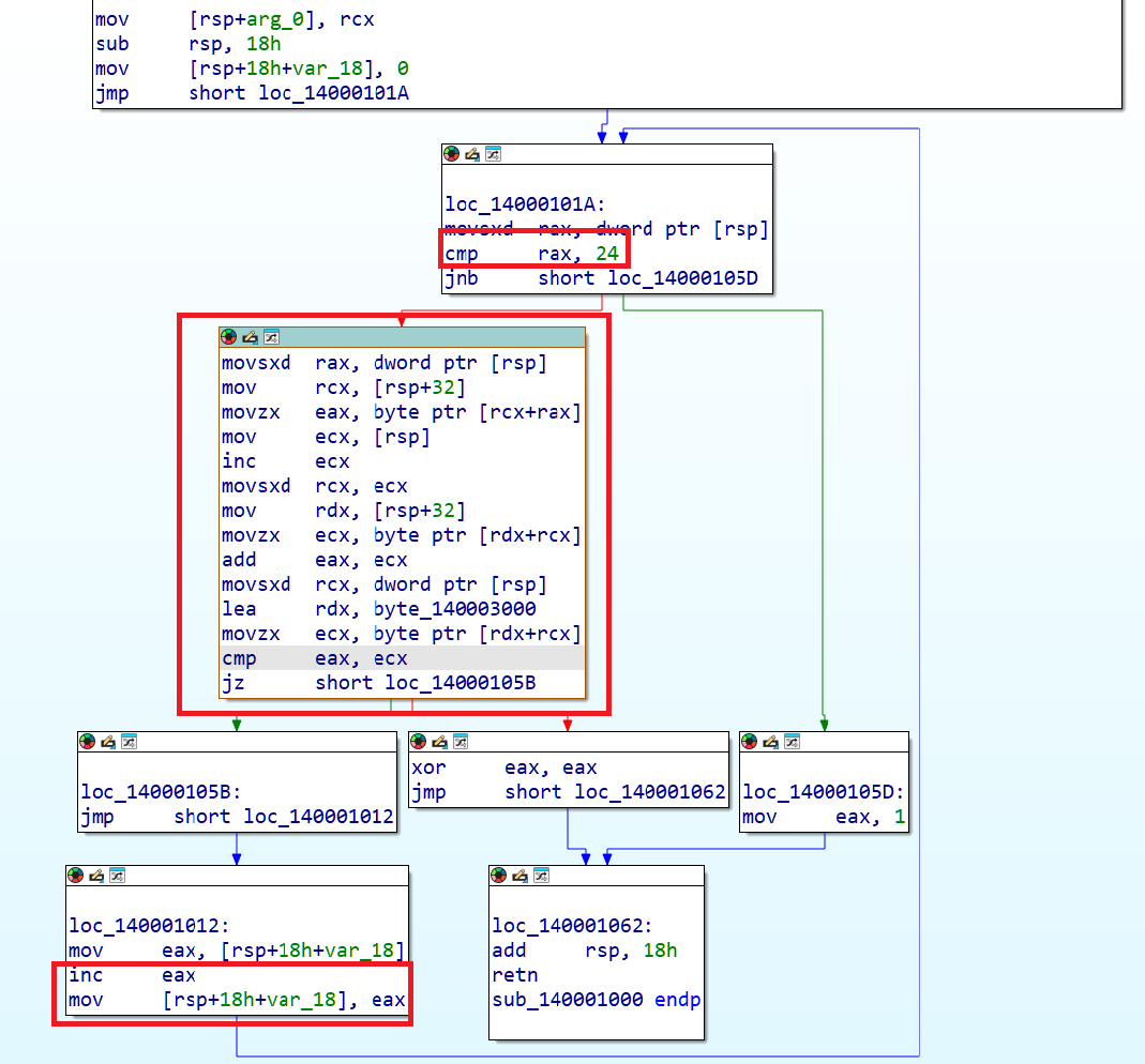 위 그림 2에서 i = 23 일 때까지( chall05[23] ) 반복문이 도는 것을 알 수 있다. 즉 위 그림 3에서 실질적으로 사용되는 원소는 위 chall05_byte 배열과 같고, 사용자 입력(input) 배열의 각 원소들의 합을 아래에 같이 간략히 나타내보았다.
